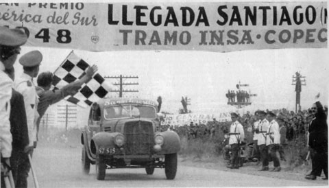 “A la vuelta, desde Lima y hasta llegar a Chile, fue una de las etapas más pesadas, pues tenía un recorrido de 1.460 kms. Todos los pilotos llegamos desfallecidos de cansancio. En el caso nuestro, anduvimos casi 24 horas en automóvil; habíamos salido a las doce de la noche de Lima y llegamos a Arica a las doce de la noche siguiente. Estábamos sin almorzar y sin comer”.