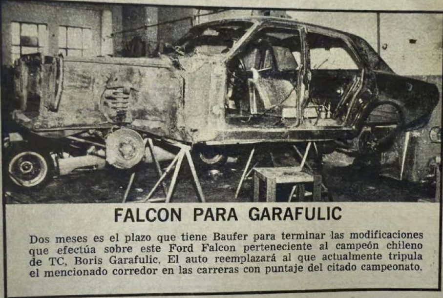 A comienzos de los años 70, Ford Motor Company Chile estaba inmersa en plena competencia con Chevrolet, especialmente en el Campeonato Nacional de Turismo Carretera y otras categorías de velocidad. Para fortalecer su presencia y ofrecer autos competitivos, Ford decidió enviar a Buenos Aires dos Ford Falcon recién salidos de la planta de Casablanca. Estos dos Falcon fueron seleccionados específicamente para ser autos de carrera, con destino al reconocido taller y preparador argentino BAUFER que estaba especializado en la conversión de autos de producción en máquinas de pista de “lomo y tomo” y en la fabricación de Sport Prototipos. Estos autos fueron asignados a los pilotos nacionales Boris Garafulic y Claudio Ibarra.