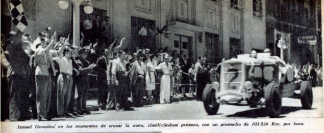 Ismael González fue un destacado piloto porteño de la Asociación de Volantes de Valparaíso, quien logró importantes éxitos deportivos con sus Ford en las carreras de fines de la década del 40 y comienzos de los 50, especialmente en las pruebas realizadas en las rutas entre Santiago y Valparaíso. Junto a Bartolomé Ortiz, tuvo el privilegio de ser uno de los dos volantes chilenos escogidos para representar a nuestro país en el Gran Premio “Presidente Arturo Alessandri Palma” o Grand Prix de Chile, realizado en el Circuito Pedro de Valdivia Norte en Santiago, en Diciembre de 1950. Condujo un monoplaza de fórmula de la marca Simca Gordini de propiedad del A.C.A. Automóvil Club Argentino, logrando llegar en un meritorio décimo lugar, pese a que se lo soltó la barra de la dirección y no logró dar el total de giros al circuito. Como es sabido, el triunfador fue el gran Juan Manuel Fangio en un Ferrari, y “Bartolo” Ortiz arribó en un espectacular cuarto puesto.