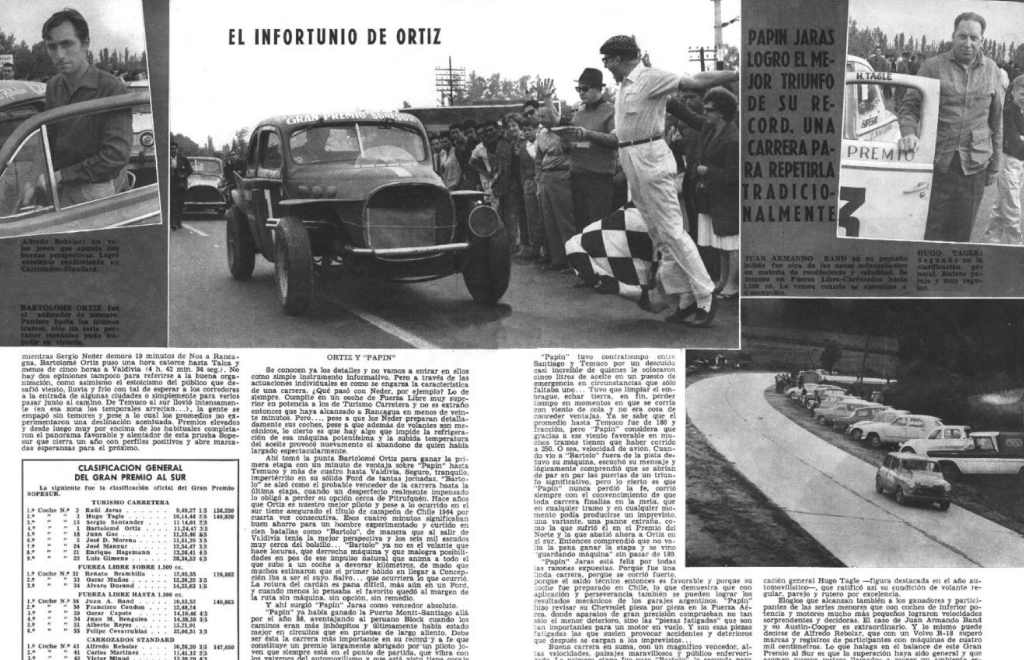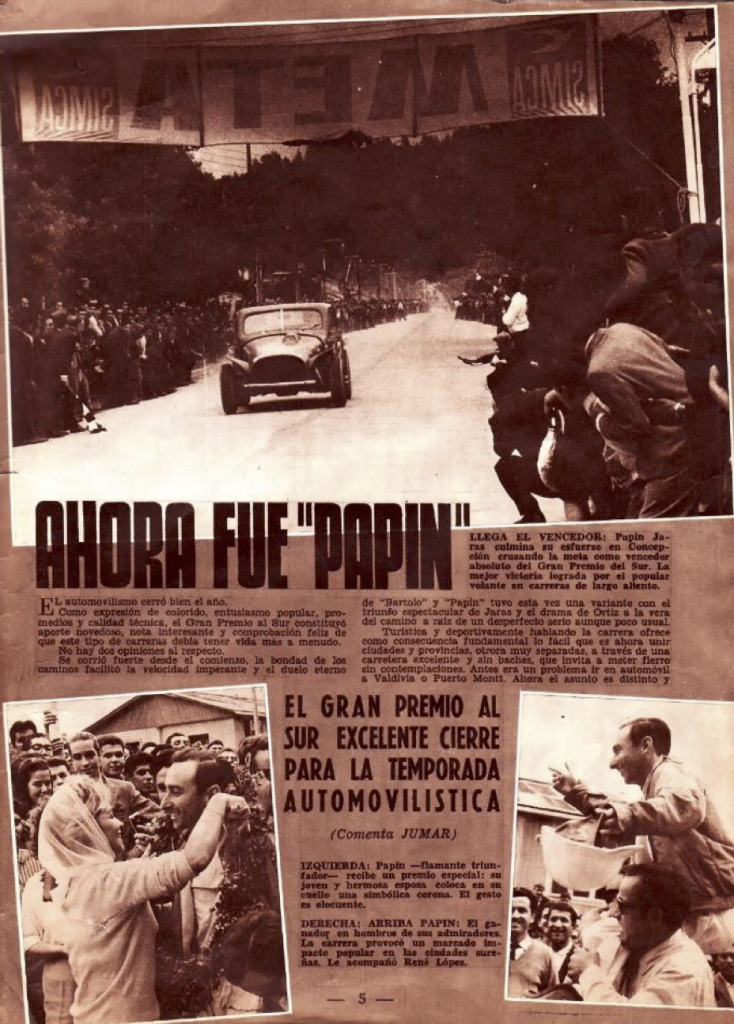 hizo de su triunfo. Se destacó que su coche fue preparado en Chile, como prueba de que con trabajo serio también se podía alcanzar el rendimiento y la fiabilidad que muchos atribuían a “los garajes argentinos”. En otras palabras: la SOPESUR no sólo mostraba pilotos; mostraba oficios, mecánicos, preparación, equipos, conocimiento local.