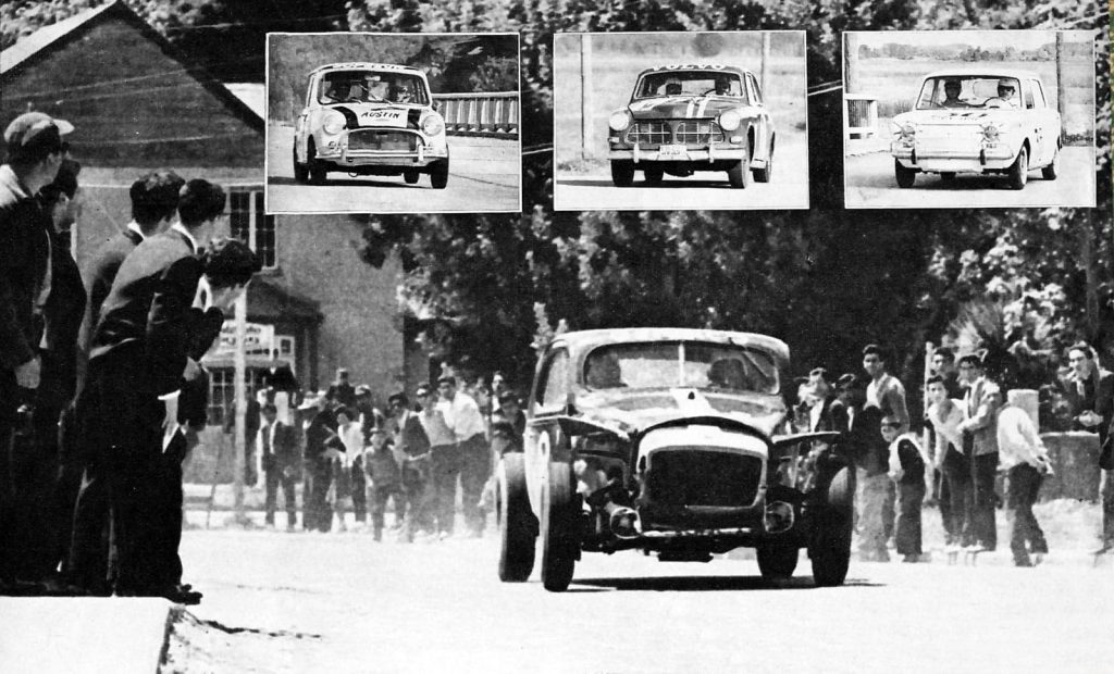 En la lista de aspirantes, el relato se ponía internacional y diverso: Boris Garafulic con un Ford Falcon nuevo (potente, pero “experimental”), Kurt George, sueco corriendo con colores del Perú en un Volvo de preparación fina, Perrota desde Argentina con su estilo aguerrido, los Calderón empujando un Ford con historia (ex “Bartolo” Ortiz), y también los “pequeños grandes” como Juan Armando Band con su Austin Cooper S, capaces de sorprender por manejo y ritmo.