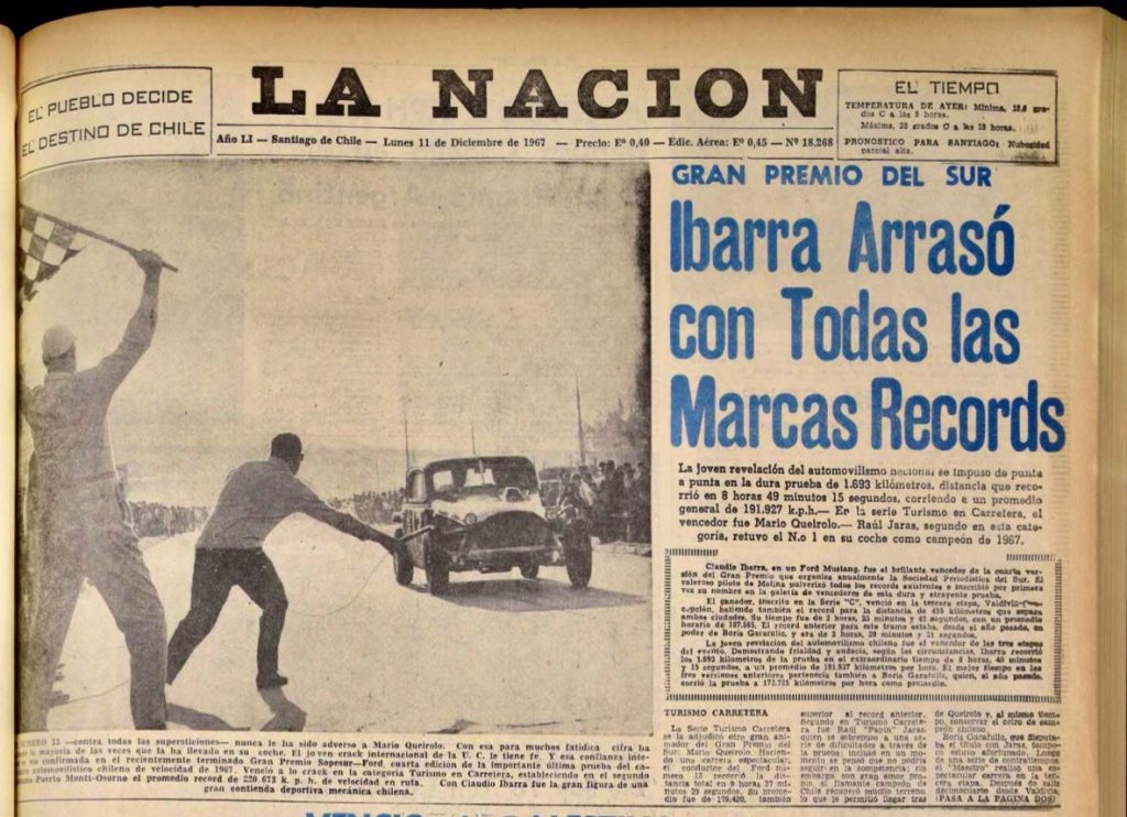 En Victoria, Ibarra seguía primero. Había parado por bencina, bajó un poco el promedio, pero seguía dominando. Cuando llegó a Temuco, rompió el récord de Garafulic y lo hizo con tal diferencia que el relato habla de “hazaña”. La idea de promedios cercanos a 190 km/h ya no era marketing: era realidad.